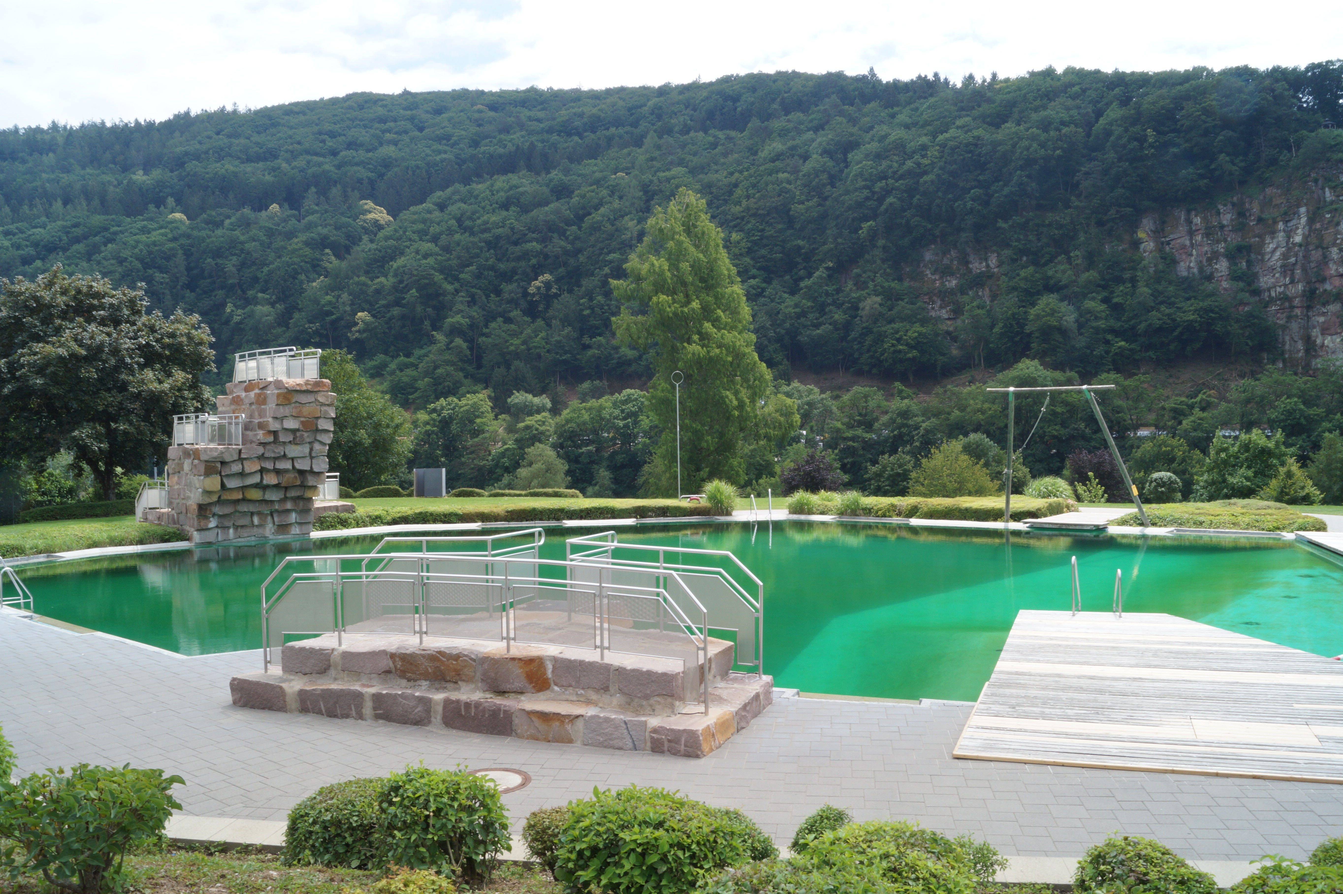 Das Neckargemünder Terrassen-Schwimmbad ist durch seine einmalig schöne Lage im Neckartal bekannt. Schwimmerbecken und Sprungbecken sind als Naturbad gestaltet.