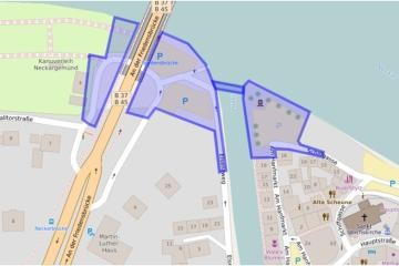 Falltorstraße ab Sicherheitsbarriere Parkplatz unter der Friedensbrücke Abfahrt zum Parkplatz unter der Friedensbrücke ab Sicherheitsbarriere Elsenzweg ab Sicherheitsbarriere Lohplatz ab Sicherheitsbarriere Schiffgasse ab Sicherheitsbarriere