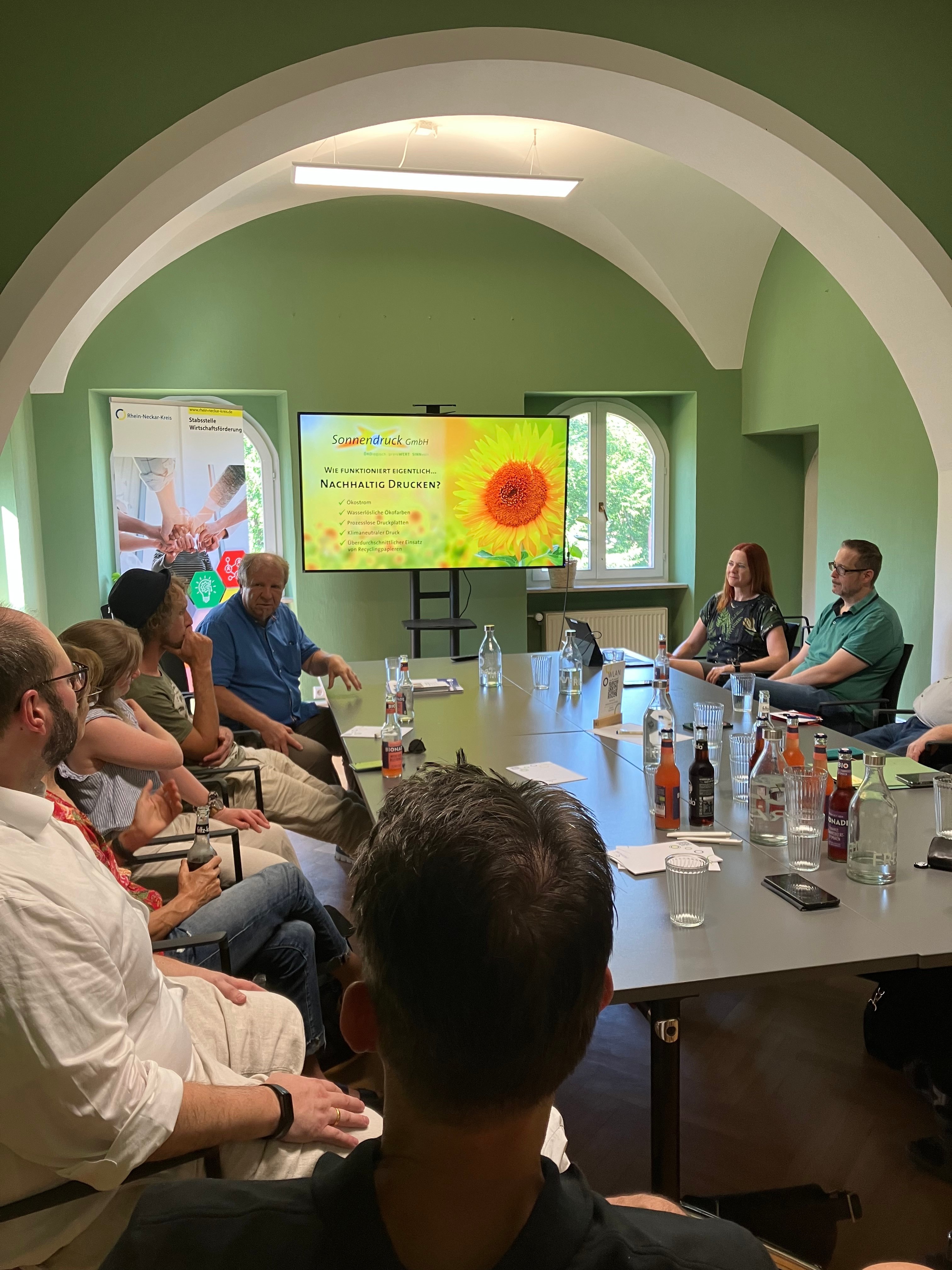 Am 25.06.2025 lud die Stabsstelle Wirtschaftsförderung des Rhein-Neckar-Kreises zu einer Veranstaltung, die verschiedene Vorträge und Diskussionen zu den Themen Gemeinwohlökonomie, Social Start-ups und Social Economy umfasste. Referenten waren u.a. Uwe Treiber (Sonnendruck), Stephan Rixecker (km42) und Mathias Henel (Stadt Mannheim).
