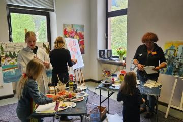 Neben Malaktionen, das Ausprobieren der Augmented-Reality App Weitersehen, die bereits 3 Stationen in Neckargemünd hat, gab es auch die Möglichkeit, sich beim Kreisseniorenrat rund um das Thema digital fit im Alter beraten zu lassen. Abgerundet wurde das Programm durch musikalische Einlagen, ein Spielezimmer für Kinder, Vorträge zur Geschichte der Villa Menzer und Schachspielen für jedermann.