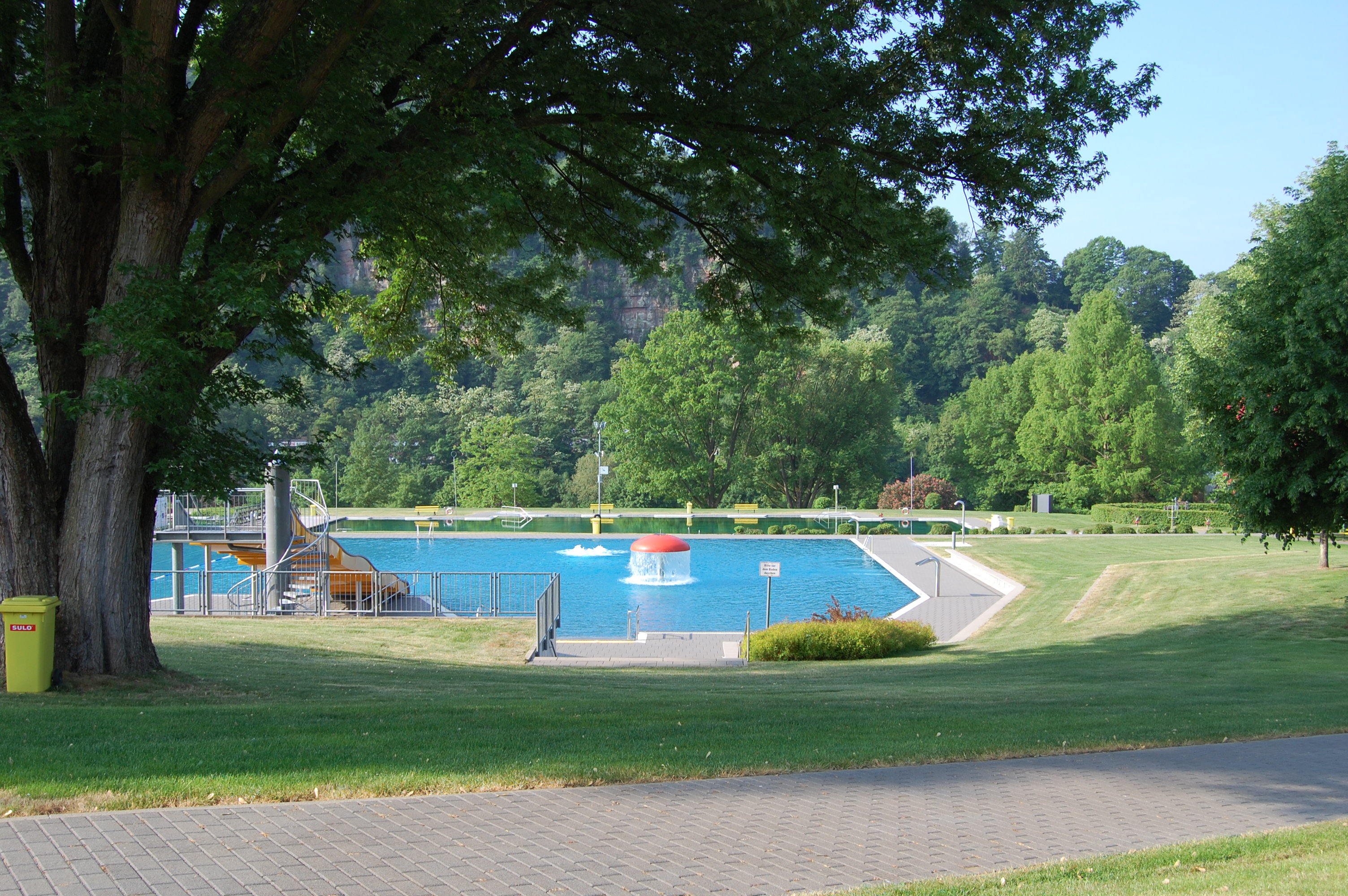 Das Neckargemünder Terrassen-Schwimmbad ist durch seine einmalig schöne Lage im Neckartal bekannt. Schwimmerbecken und Sprungbecken sind als Naturbad gestaltet.