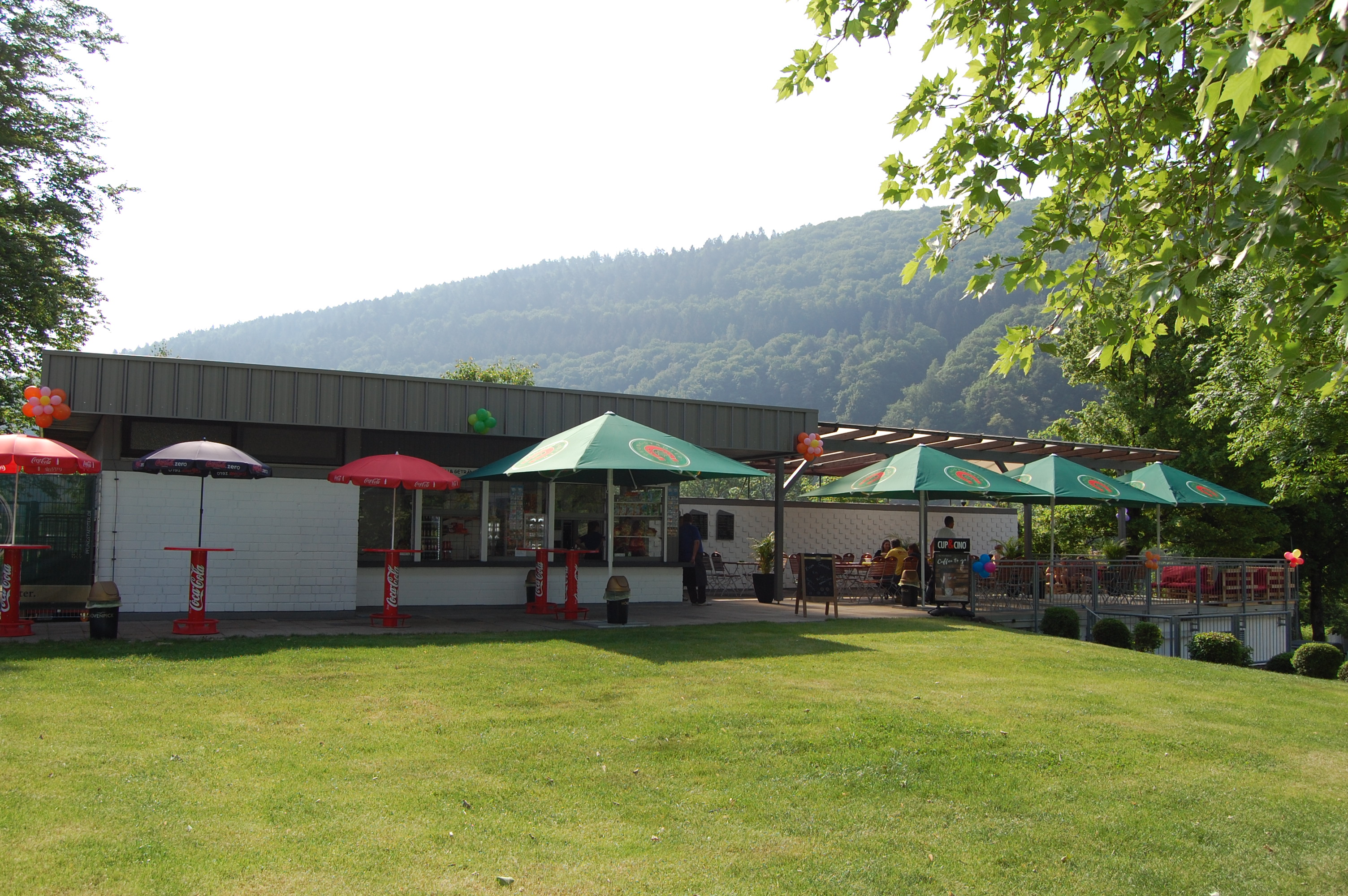 Langeweile lassen die Spiel- und Sporteinrichtungen auf dem Gelände nicht aufkommen und der schöne Baumbestand spendet angenehmen Schatten an heißen Tagen. Das Terrassencafé sorgt bestens für das leibliche Wohl der Badegäste.