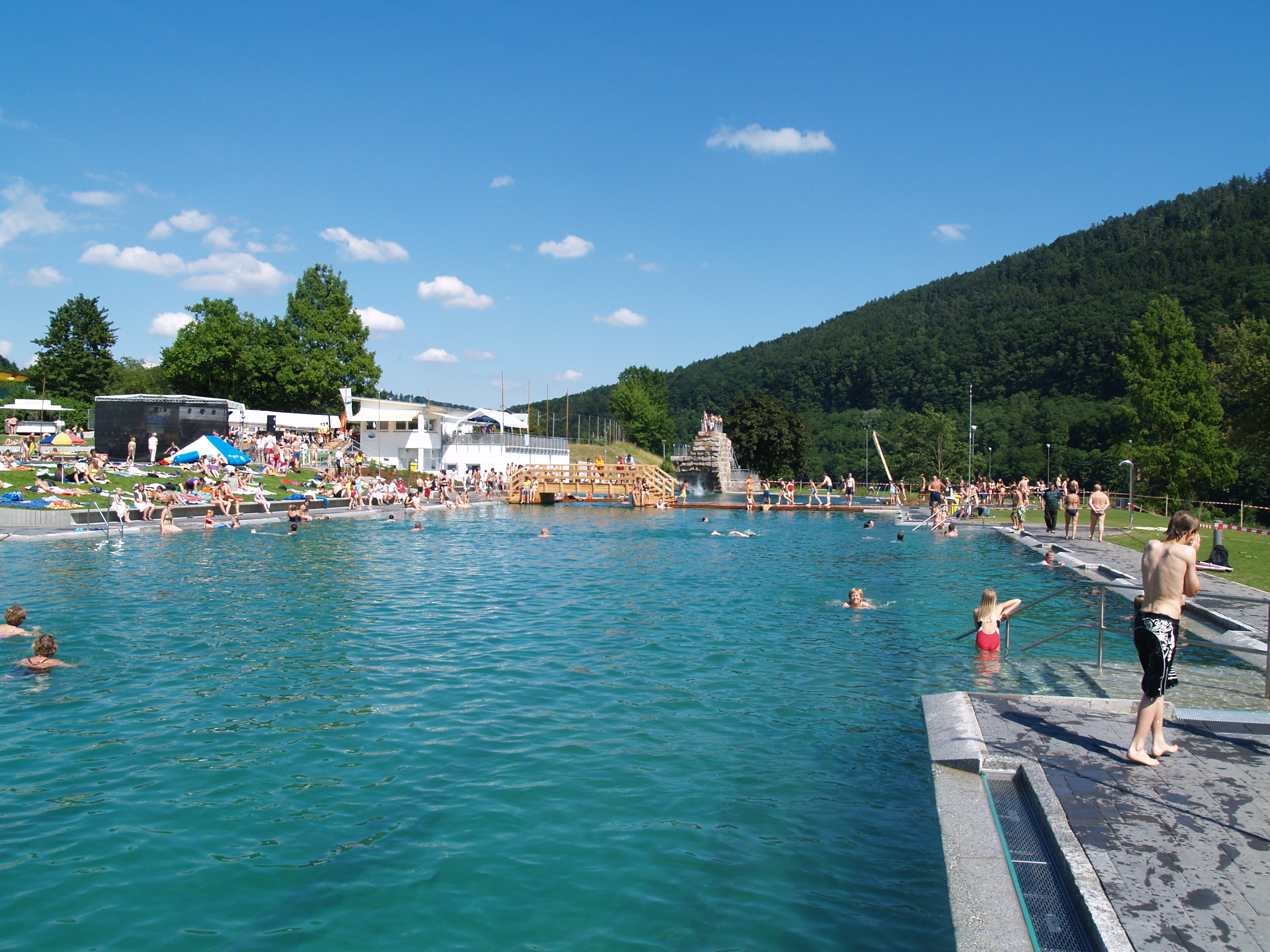 Das Neckargemünder Terrassen-Schwimmbad ist durch seine einmalig schöne Lage im Neckartal bekannt. Schwimmerbecken und Sprungbecken sind als Naturbad gestaltet.