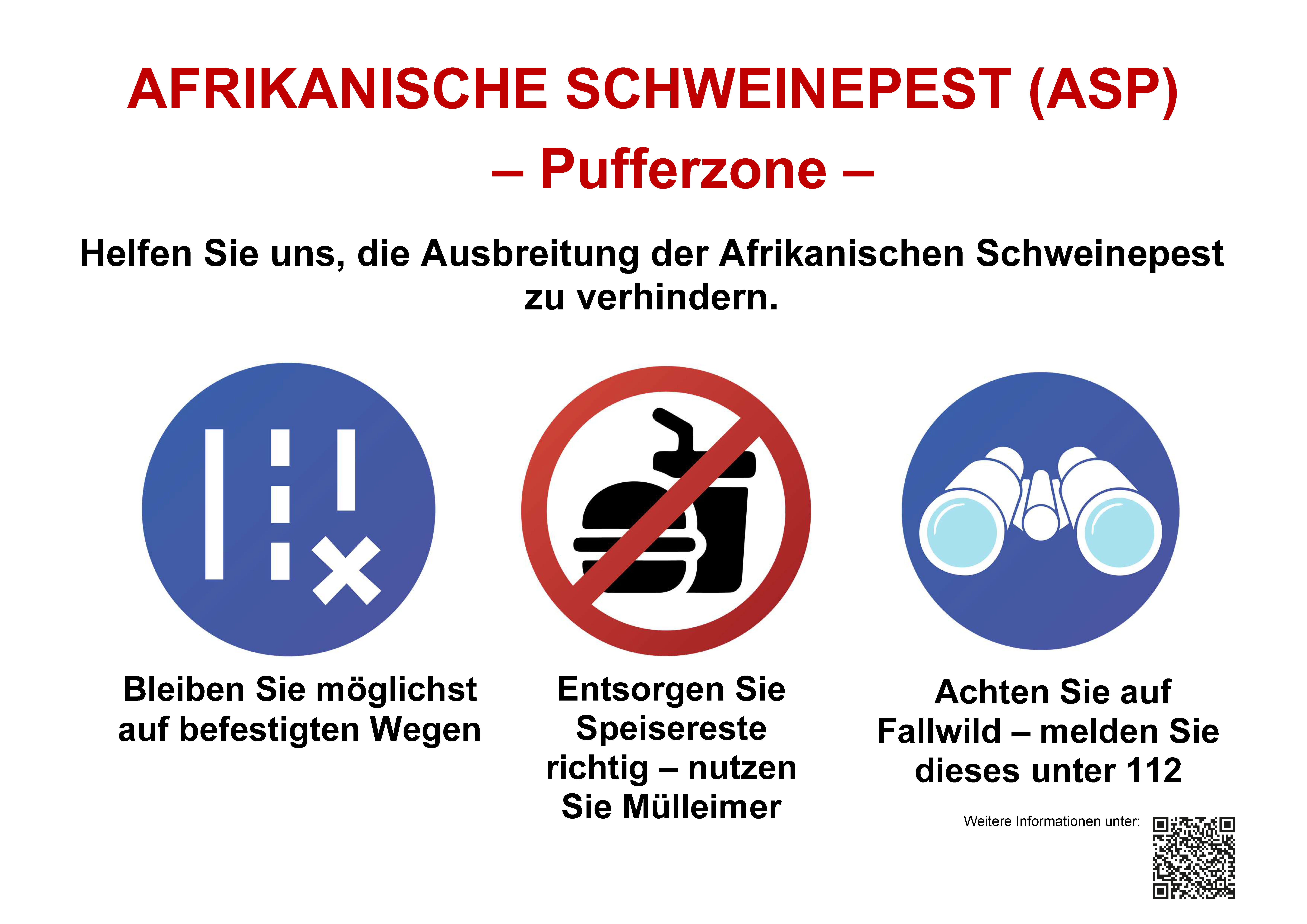 - Tote Wildschweine (Fallwild) unter 112 melden.