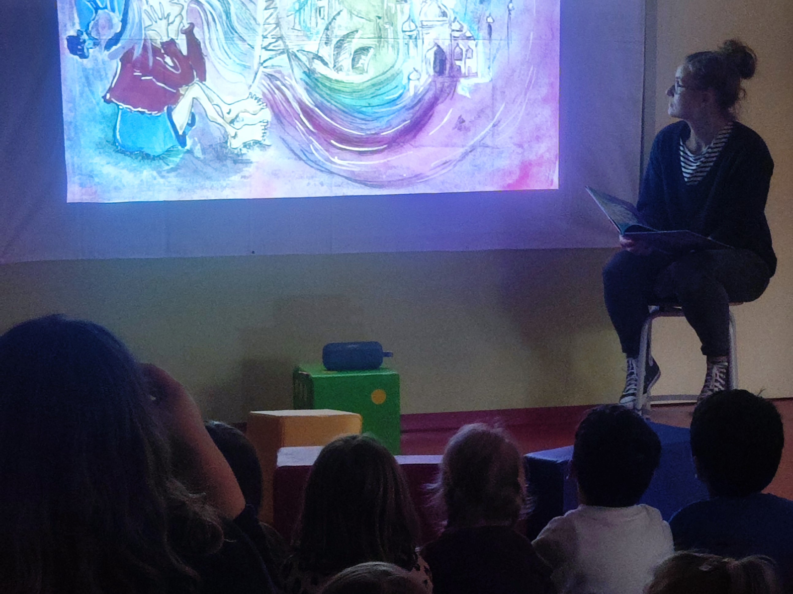 Bücher sollen Spaß machen und genau das vermittelten Franziska Tendel und Robert Kesternich den Kindern bei der Lesung ihres Bilderbuches „Der kleine Komponent“. Die Hauptfigur des Buches ist ein kleiner Tüftler, der in die Welt hinauszieht, um endlich zu erfahren, wie er sein Fahrrad zum Fliegen bekommt. Beharrlich verfolgt er sein Ziel und am Ende erhebt er sich dann tatsächlich mit seinem Rad in die Lüfte. Die Kinder folgten nicht nur gespannt der live vorgetragenen Geschichte, sie konnten auch visuell in die ausdrucksstarken Illustrationen von Franziska Tendel eintauchen, da diese großflächig an die Wand projiziert wurden. Abgerundet wurde das Seh- und Hörerlebnis durch die harmonische musikalische Untermalung von Robert Kesternich, der die Musikstücke komponierte und produzierte.
