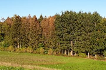 In den kommenden kälteren Monaten sind die Borkenkäfer an ihr Winterquartier gebunden. Werden befallene Bäume rechtzeitig erkannt, entfernt und aus dem Wald abgefahren, kann der Befall im kommenden Jahr weiter reduziert werden. Befallskontrollen sind daher auch im Herbst und Winter sinnvoll. Überwinterungsbäume erkennt man an abblätternder Rinde, brauner Kronenverfärbung oder grüner Nadelstreu am Boden. Je früher solche Bäume gefunden werden, desto besser: Denn wenn die Rinde mitsamt den Käfern abfällt, überwintern die Käfer im Boden und fliegen im nächsten Jahr erneut aus.