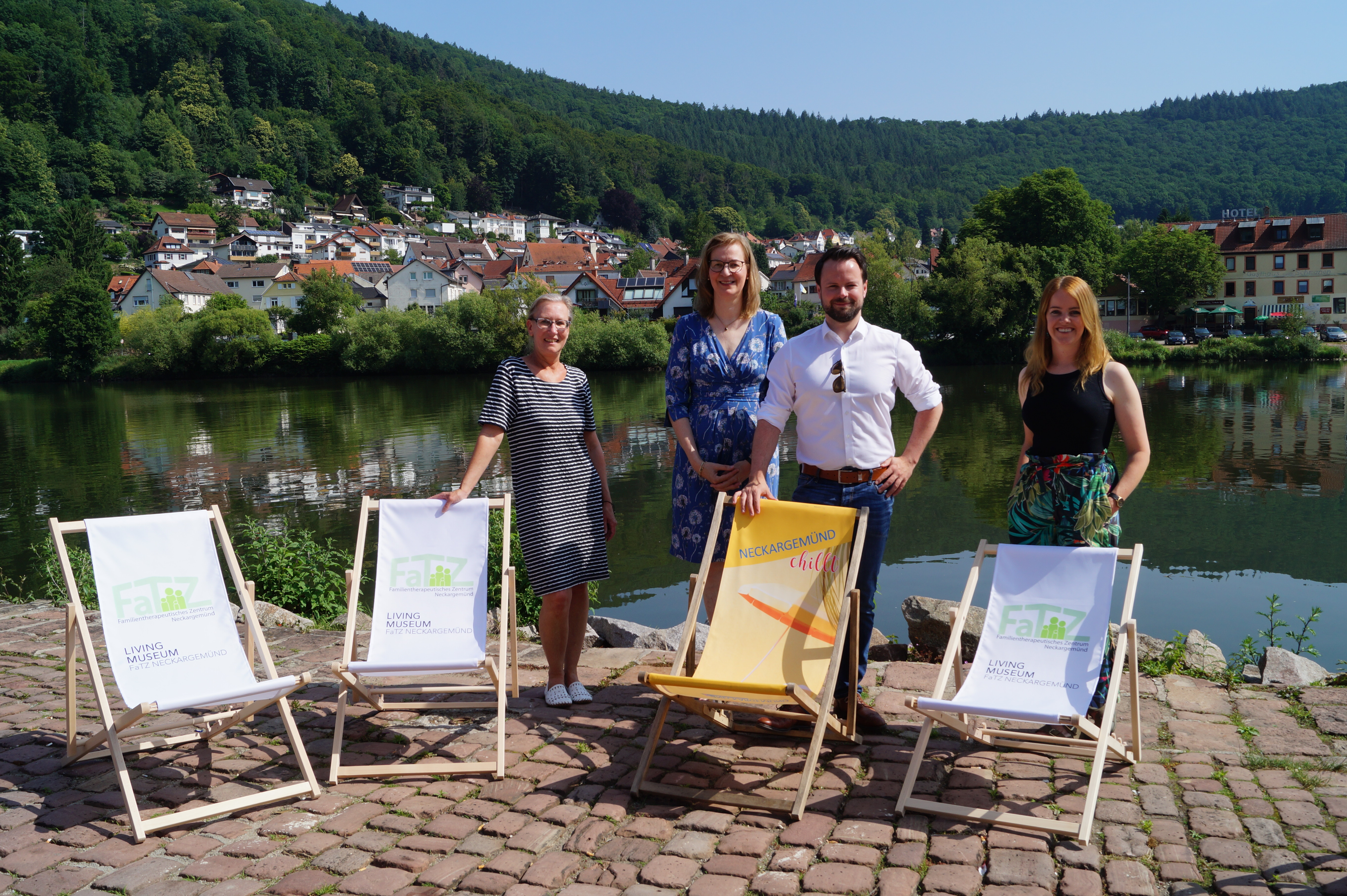 Frau Dr. Oelkers-Ax und Frau Rosen des FaTZ (Familientherapeutisches Zentrum Neckargemünd) übergaben bereits im Juni drei Liegestühle der Stadtverwaltung für die Neckarfrische, um dieses Angebot der Stadt tatkräftig zu unterstützen.