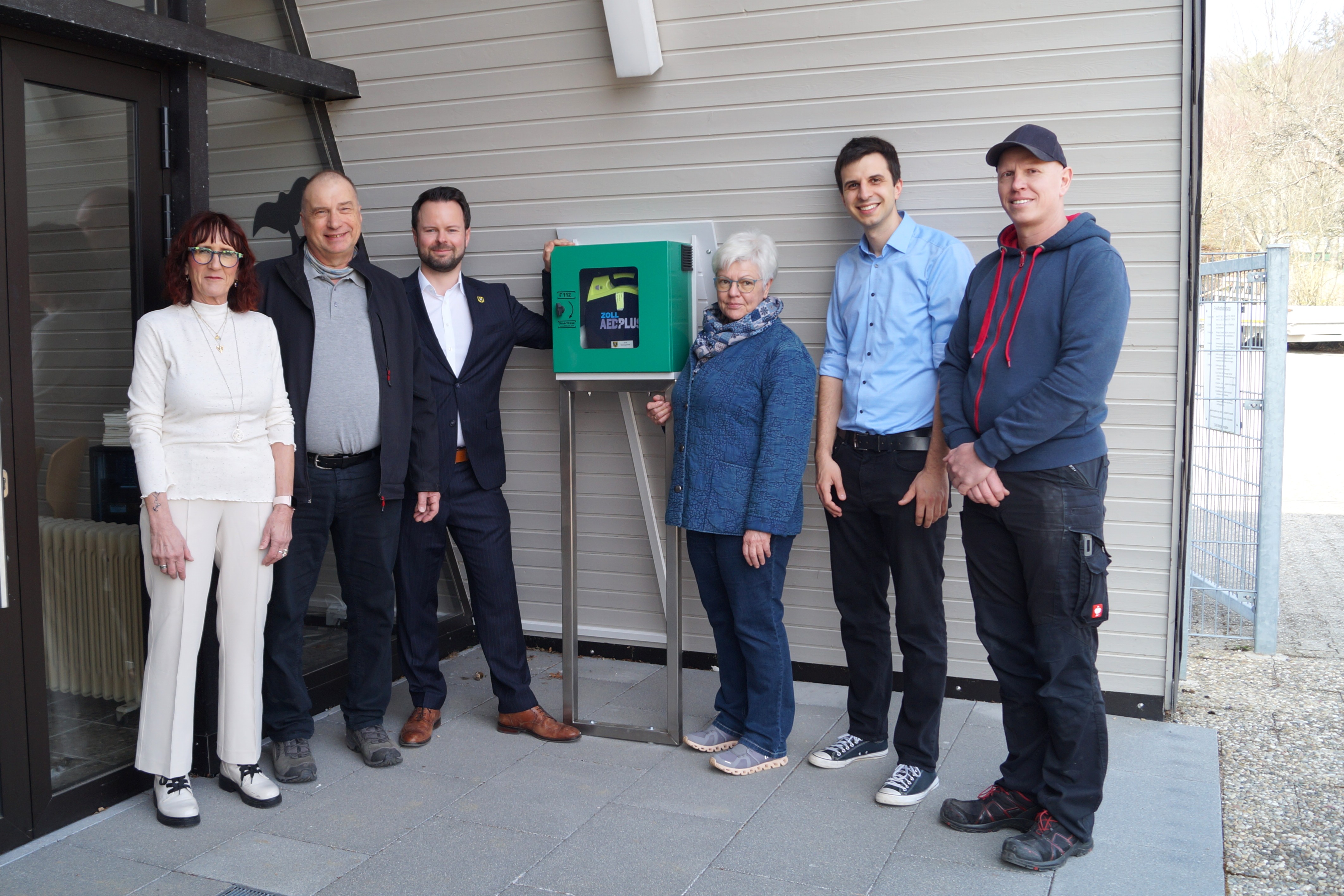 In Waldhilsbach steht ab sofort ein öffentlich zugänglicher Defibrillator (AED) an der Friedhofskapelle zur Verfügung. Das Gerät wurde am 9. März 2026 offiziell vom DRK-Ortsverein an die Stadtverwaltung von Neckargemünd übergeben. Bürgermeister Jan Peter Seidel und Ortsvorsteherin Lilly Linier nahmen den Defibrillator dankend entgegen.