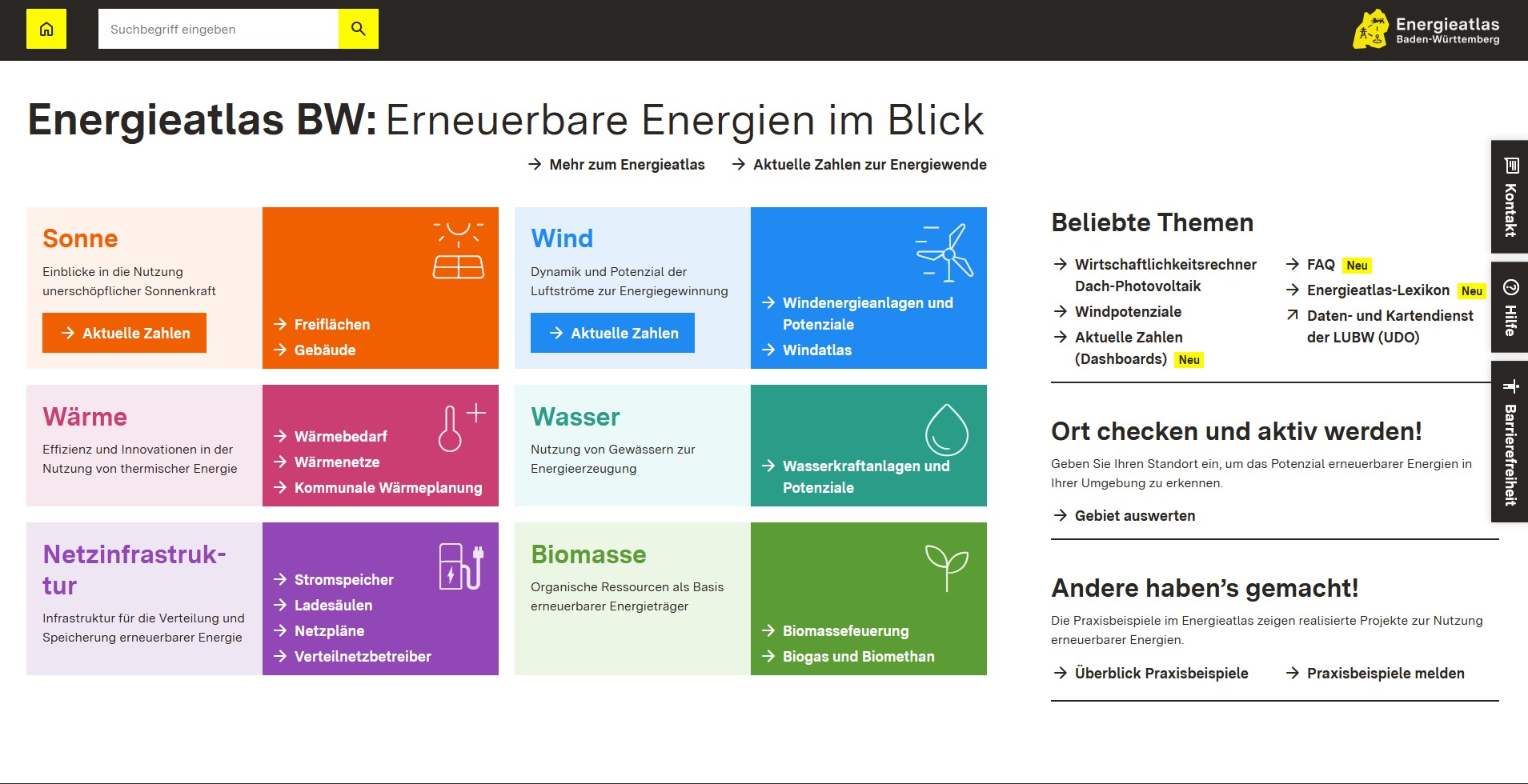 Der Energieatlas Baden-Württemberg ist unter folgendem Link aufrufbar: https://www.energieatlas-bw.de/