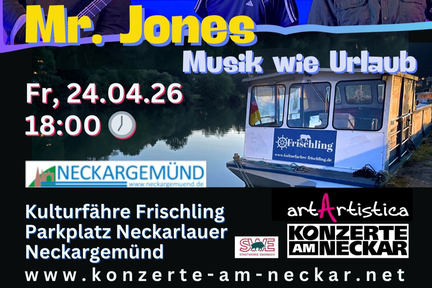 Am Freitag, den 24. April 2026, ab 18 Uhr, geht es los mit einem Konzert im Rahmen der „Konzerte am Neckar“ von Angela Mahmoud.