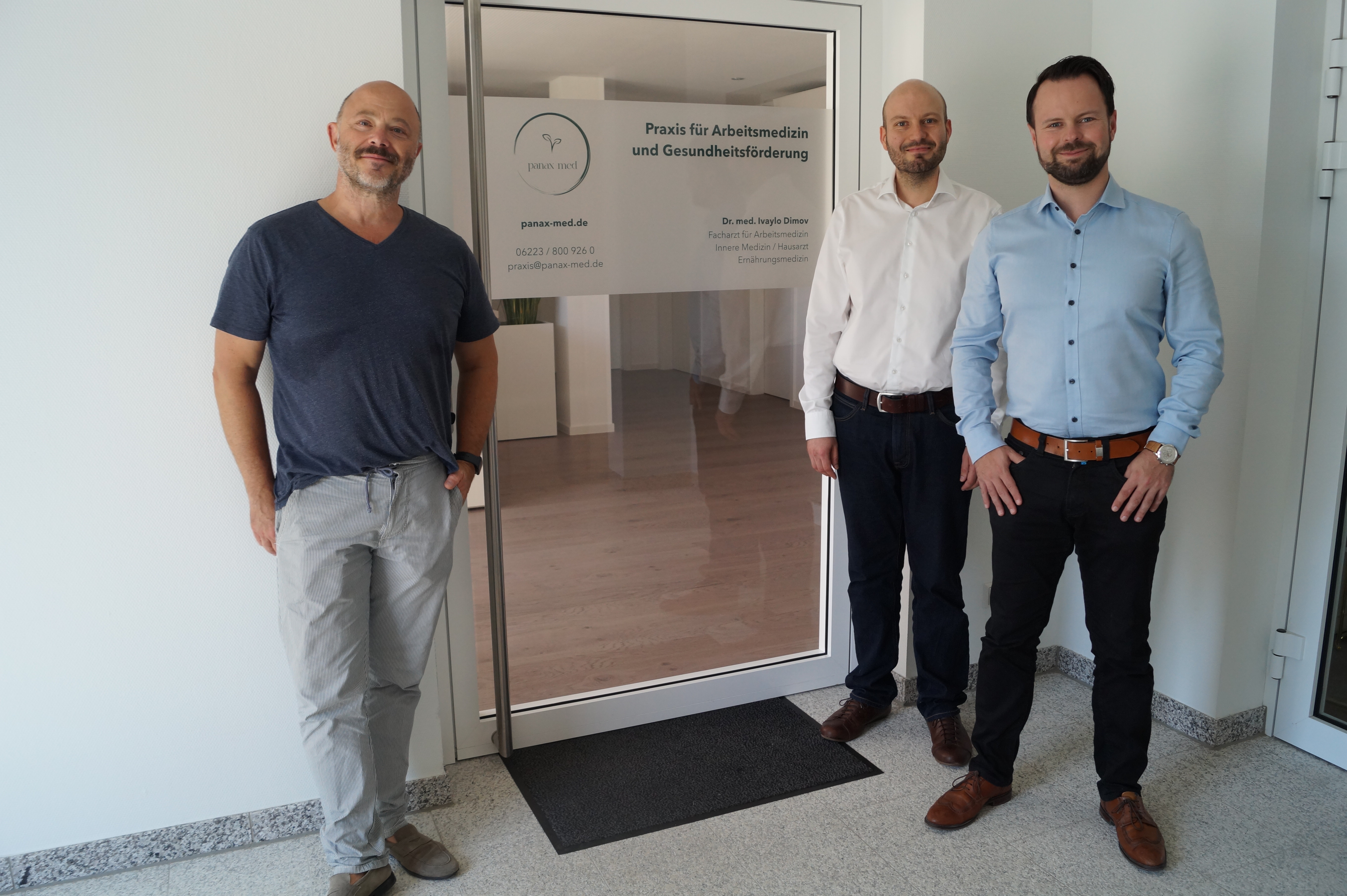 Die Praxis von Dr. Dimov befindet sich bereits seit Anfang 2024 in Kleingemünd, Kurpfalzstraße 33. Bürgermeister Jan Peter Seidel und der Vorsitzende des Gewerbevereins Ralph Dreher besuchten im August den Spezialist für Hausarzt- und Arbeitsmedizin und wünschten weiterhin viel Erfolg. Aus der ganzen Region kommen u. A. Taxi- und LKW-Fahrer oder Feuerwehrleute zu ihm z. B. für Führerschein- oder Stapleruntersuchungen (Sehvermögen, Herzerkrankungen) oder zum Thema Atemschutz (siehe eines der Fotos). Die helle freundliche Praxis mit zwei Mitarbeiterinnen hat ein eigenes kleines Labor, arbeitet aber auch mit einem externen Labor zusammen.