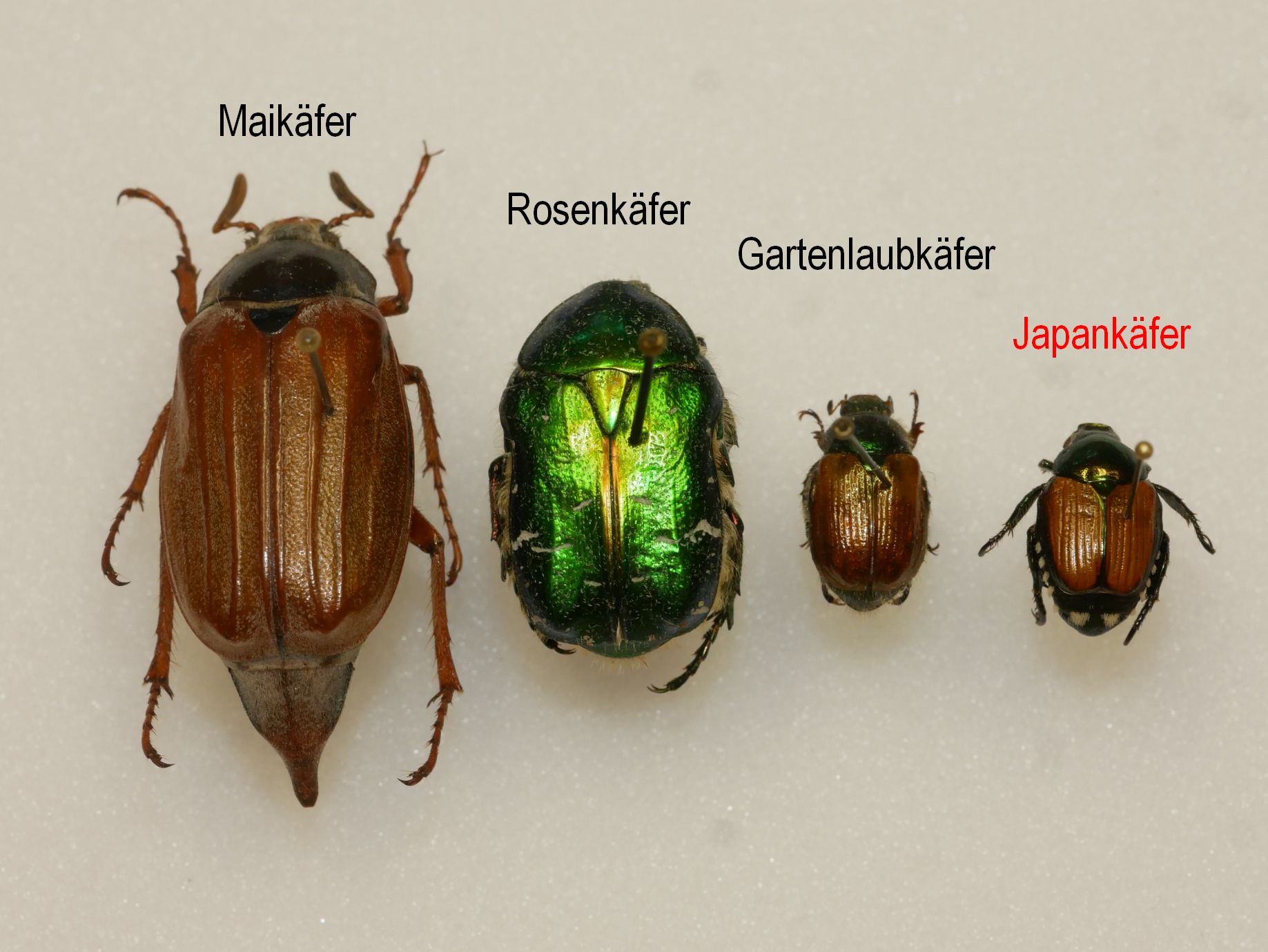 Japankäfer wird oft mit Gartenlaubkäfer oder Rosenkäfer verwechselt