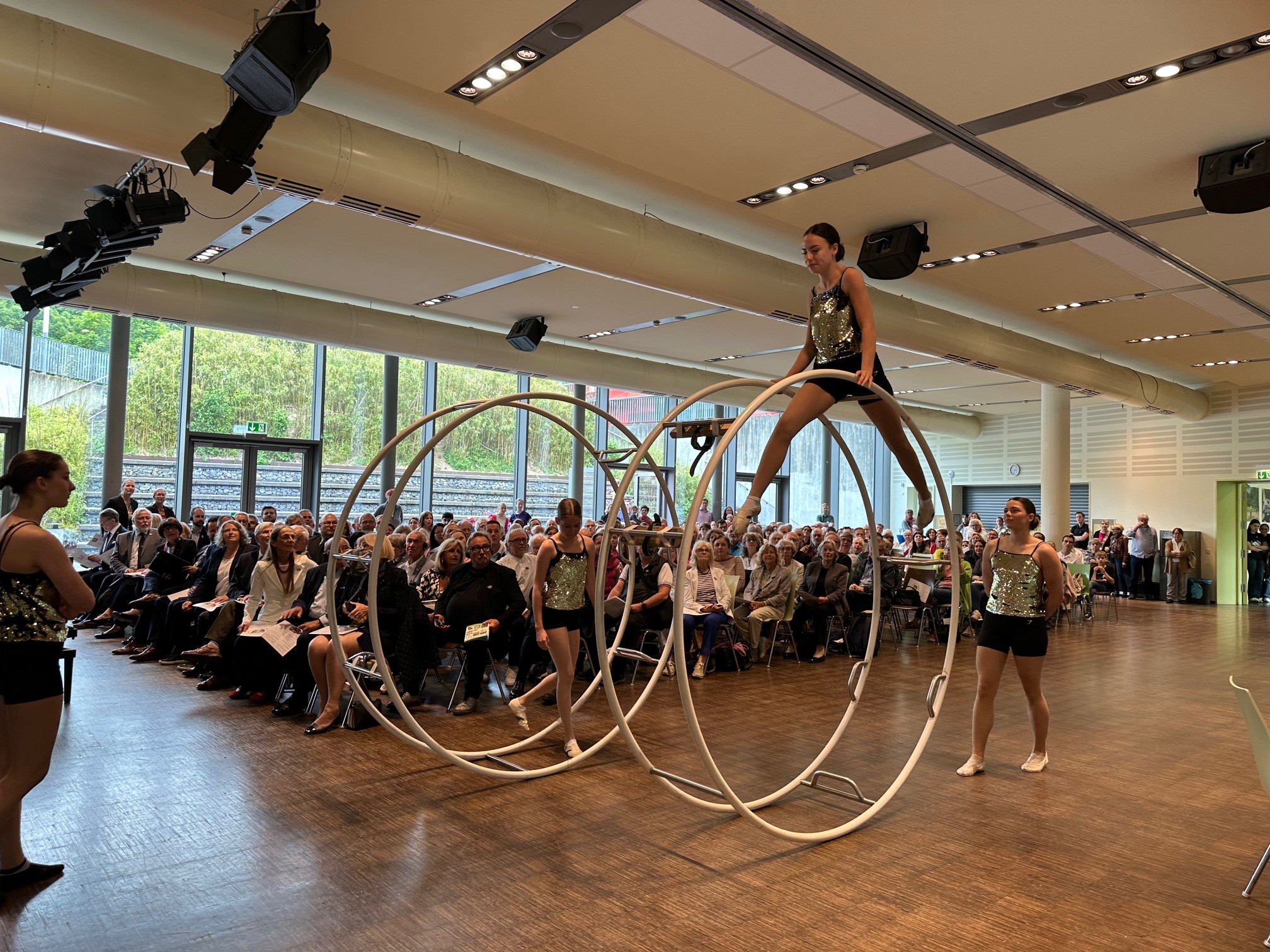 55 Jahre lang verbindet die Städtepartnerschaft Evian-les-Bains und Neckargemünd bereits. Am letzten Samstag, den 17. Mai 2025, wurde diese Partnerschaft gefeiert – wie frisch verliebt – mit Musikbeiträgen, Tanzeinlagen, Berichten vom Schüleraustausch, Rhönrad-Show und Ehrungen. So zeigte sich im bunten Programm, was diese Verbindung ausmacht und sich die Bevölkerung in der Städtepartnerschaft einbringt.