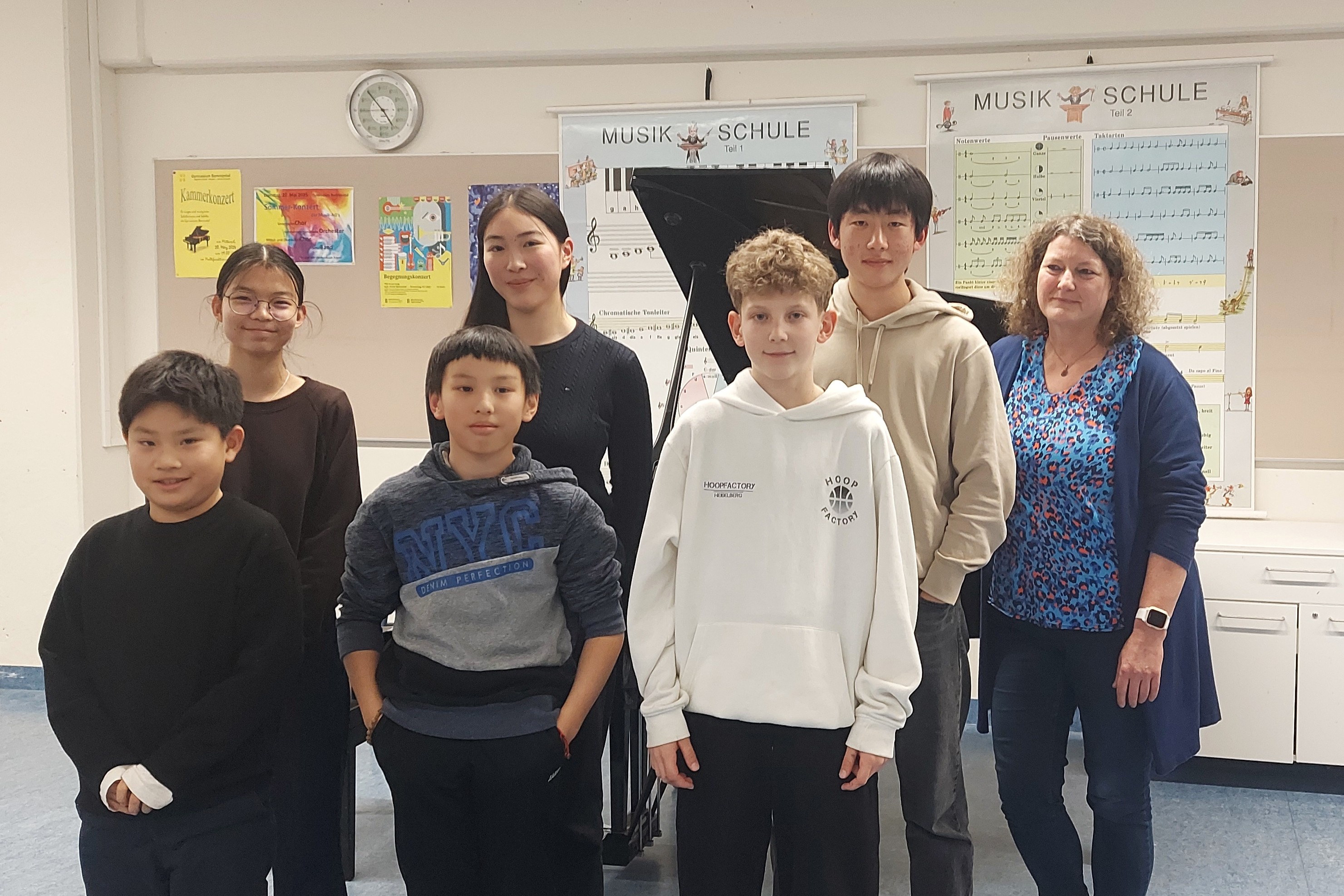 So erspielte sich als allerjüngster Leonardo Weiss aus der Schlagzeugklasse von Herrn Marcelin Huguet in der Altersgruppe Ia wunderbare 24 Punkte von maximal 25, zudem errangen auch sechs Klavierschülerinnen und -schüler aus der Klasse von Frau Bettina Konetschny wundervolle Ergebnisse: Yinchen Tommy Hu (Ib, 25 Punkte), Levi Turajlic (II, 22 Punkte), Pascal Shaocheng Wang (II, 24 Punkte mit Weiterleitung zum Landeswettbewerb), Emily Shaoyi Wang (V, 22 Punkte) Qingxin Li (V, 23 Punkte mit Weiterleitung zum Landeswettbewerb) und Tommy Ziyu Zheng (V, 24 Punkte mit Weiterleitung zum Landeswettbewerb).