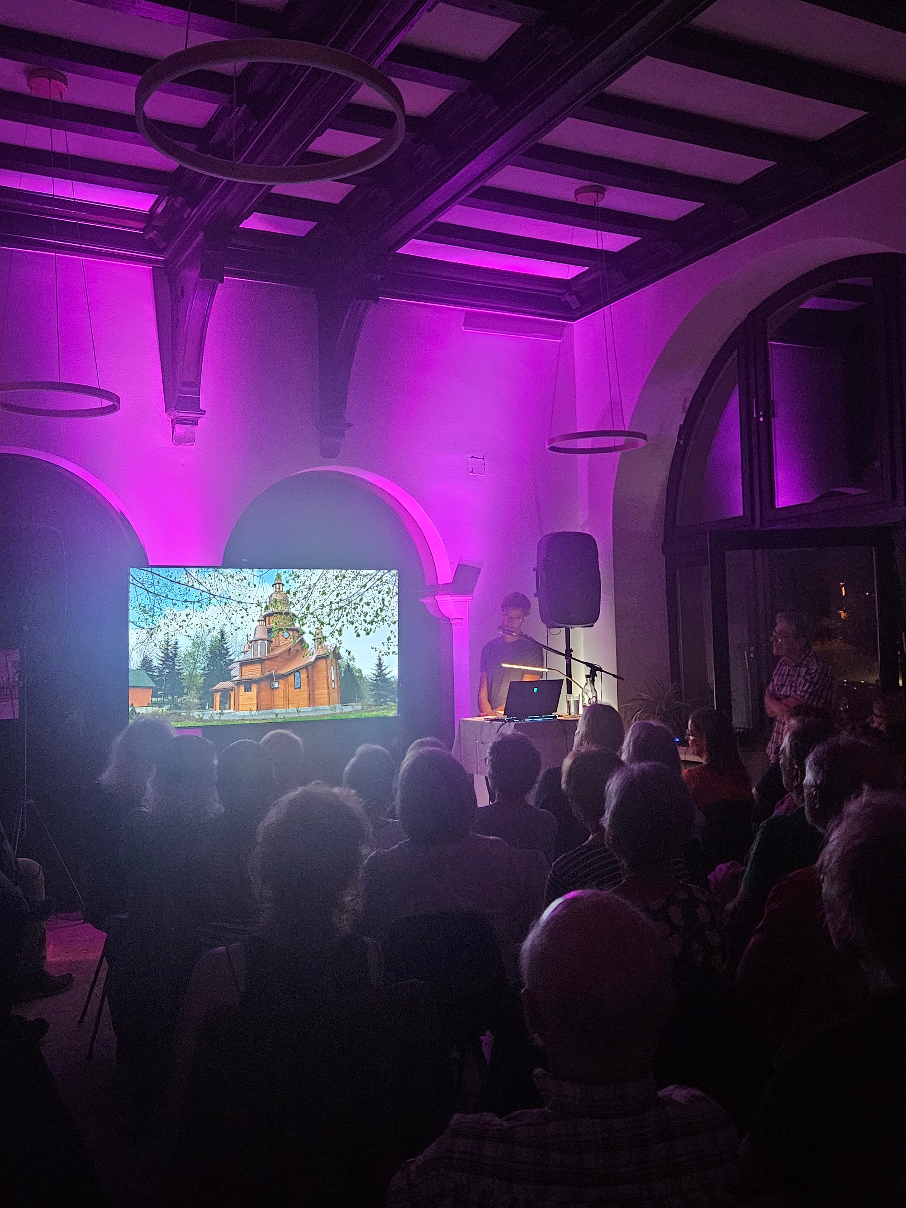 Zur Lesung mit Stephan Orth lud am 09. August 2024 der Kulturverein Neckargemünd e.V. in das Foyer der Villa Menzer. Bis auf den letzten Platz war das violett beleuchtete Foyer besetzt. Nach der Lesung folgte ein lockerer Austausch in der Küche der Villa Menzer.