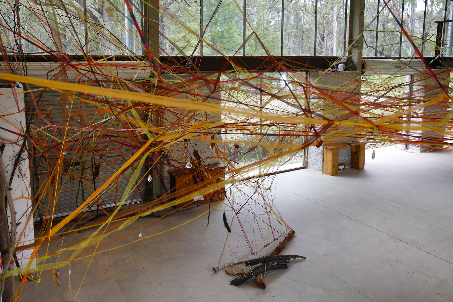 Am kommenden Sonntag, 21. Juli 2024, um 15 Uhr, findet im Menzerpark zu dieser Ausstellung eine einzigartige Kunst-Aktion statt, bei der jeder mitmachen kann. Inspiriert von der großen textilen Installation, die sie für ihre Ausstellung in Australien realisierte, soll auch in Neckargemünd eine große Farbwolke entstehen. Im Menzerpark werden unzählige Bänder, Wolle und leuchtend bunte Organzastreifen zu einem Netz ganz eigener Art verspannt.