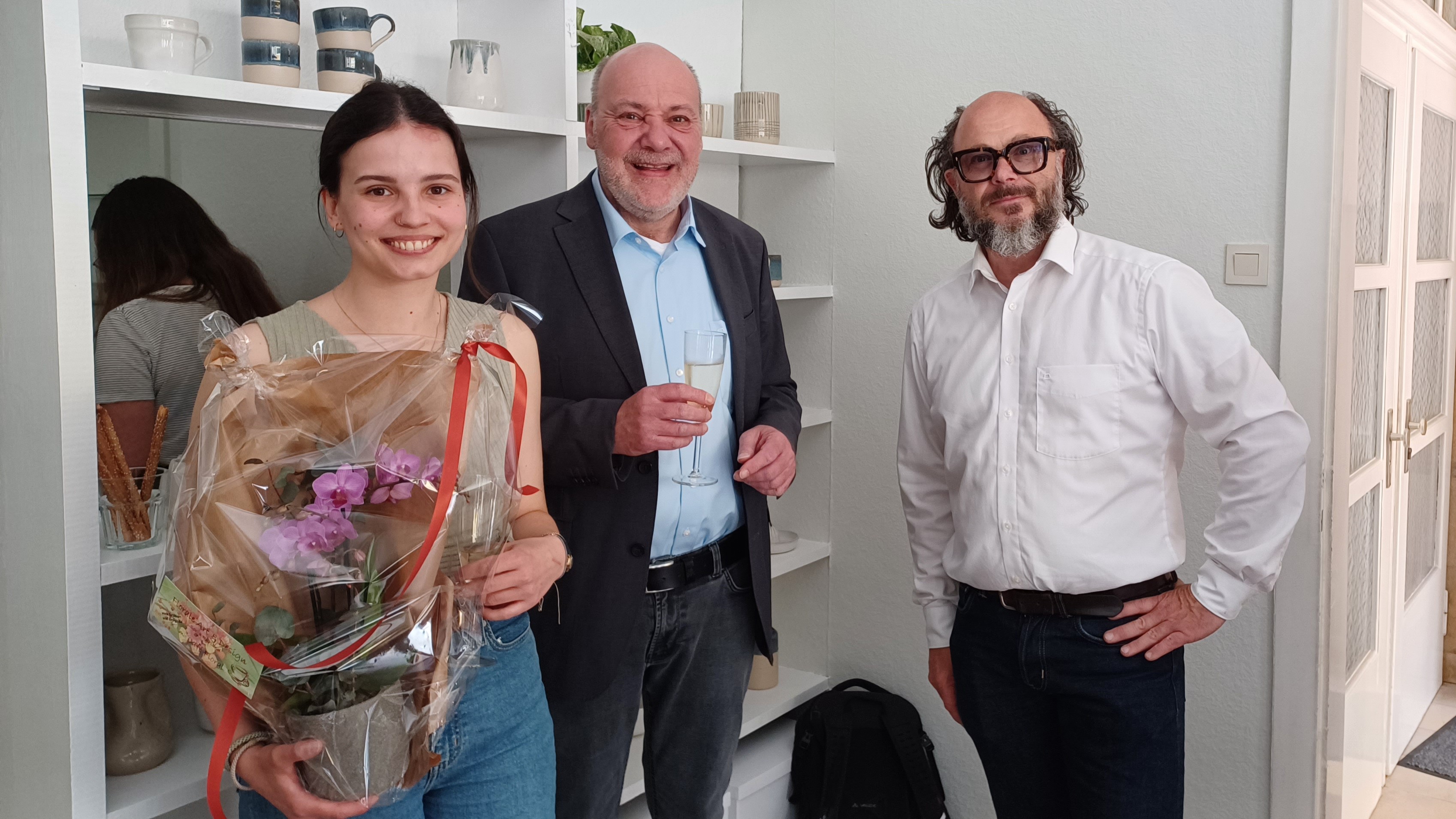 Bürgermeister Frank Volk und Ralph Dreher vom Gewerbeverein hießen Hanna Kratz herzlich in der Neckargemünder Geschäftswelt Willkommen und wünschten ihr alles Gute. Neben dem Verkauf bietet Hanna Kratz, die seit 2018 töpfert, auch Kurse an.