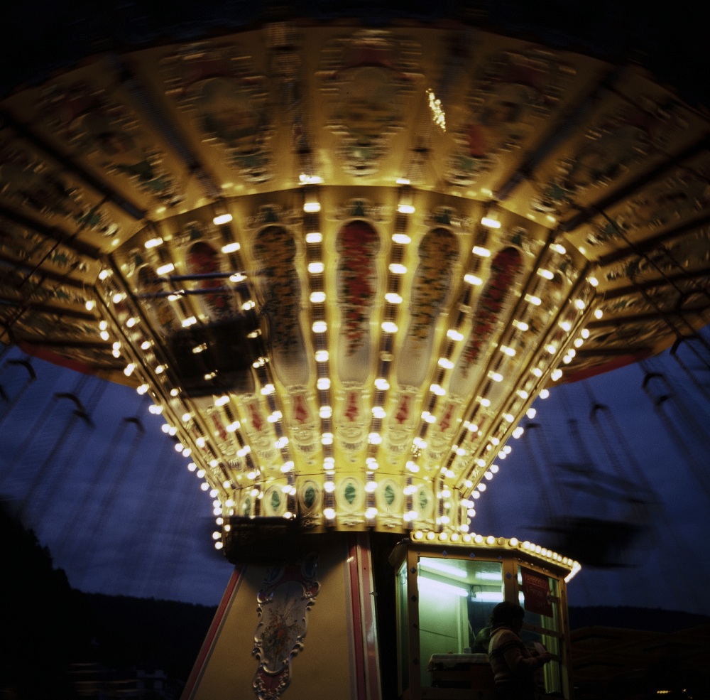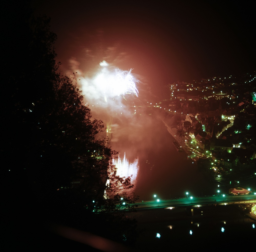 Vor diesem Hintergrund schien es konsequent, das physisch vorhandene Werk nun auch ins Digitale zu überführen. Im Frühjahr 2025 verließen endlich sieben Umzugskartons voller Dias das Haus, um dank einer großzügigen Förderung durch die Hanna Weis Stiftung durch eine Spezialfirma digitalisiert zu werden. Inzwischen liegen alle Dia-Digitalisate vor und eine gute Auswahl soll über die kommenden Monate nach und nach auf der Homepage des Museums der Öffentlichkeit zur Verfügung gestellt werden. Anlässlich des Bohrermarktes erfolgt nun die Veröffentlichung der ersten Werke – darauf zu sehen: hauptsächlich Aufnahmen, die die besondere Stimmung des Marktes einfangen; Feuerwerke, bunte Lichterspiegelungen auf dem Wasser, die hell beleuchteten Fahrgeschäfte…