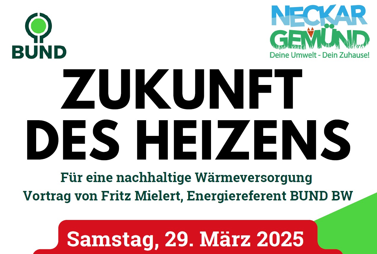Der BUND Ortsverband und die Stadt Neckargemünd laden am 29. März zum Expertenvortrag mit anschließender Diskussion über „Die Zukunft des Heizens – für eine nachhaltige Wärmeversorgung“ ein. Der Eintritt ist frei.